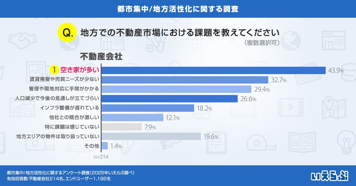 不動産市場における地方での課題、「空き家が多い」が最多となる結果に!いえらぶ調べ株式会社いえらぶGROUP。