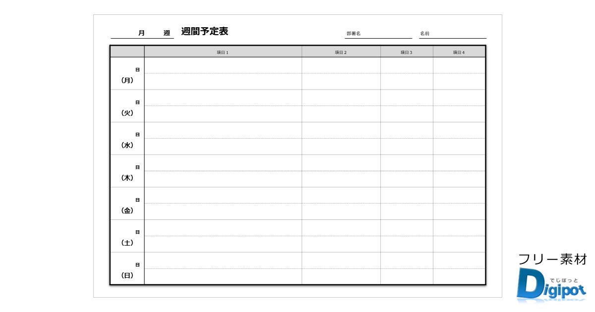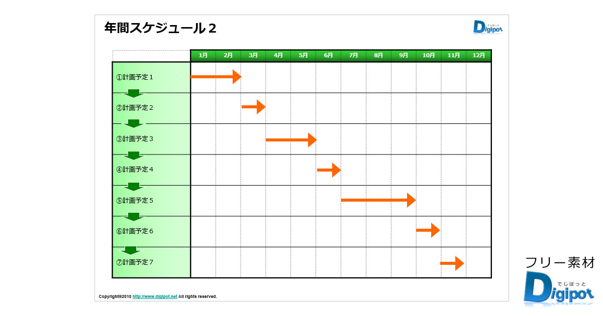 計画表テンプレート パワーポイント エクセルフリー素材、無料素材のDigipot。