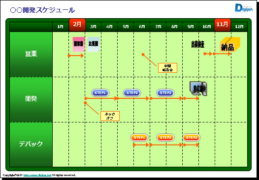 開発スケジュール表作成テンプレート パワーポイントフリー素材、無料素材のDigipot。