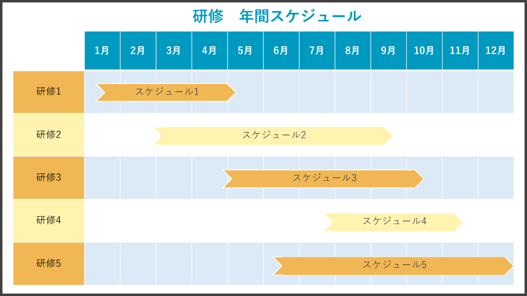 パワーポイントで見やすいスケジュール表8選!実例イメージ付でご紹介 - Document Studio - ビジネス資料作成支援メディア。