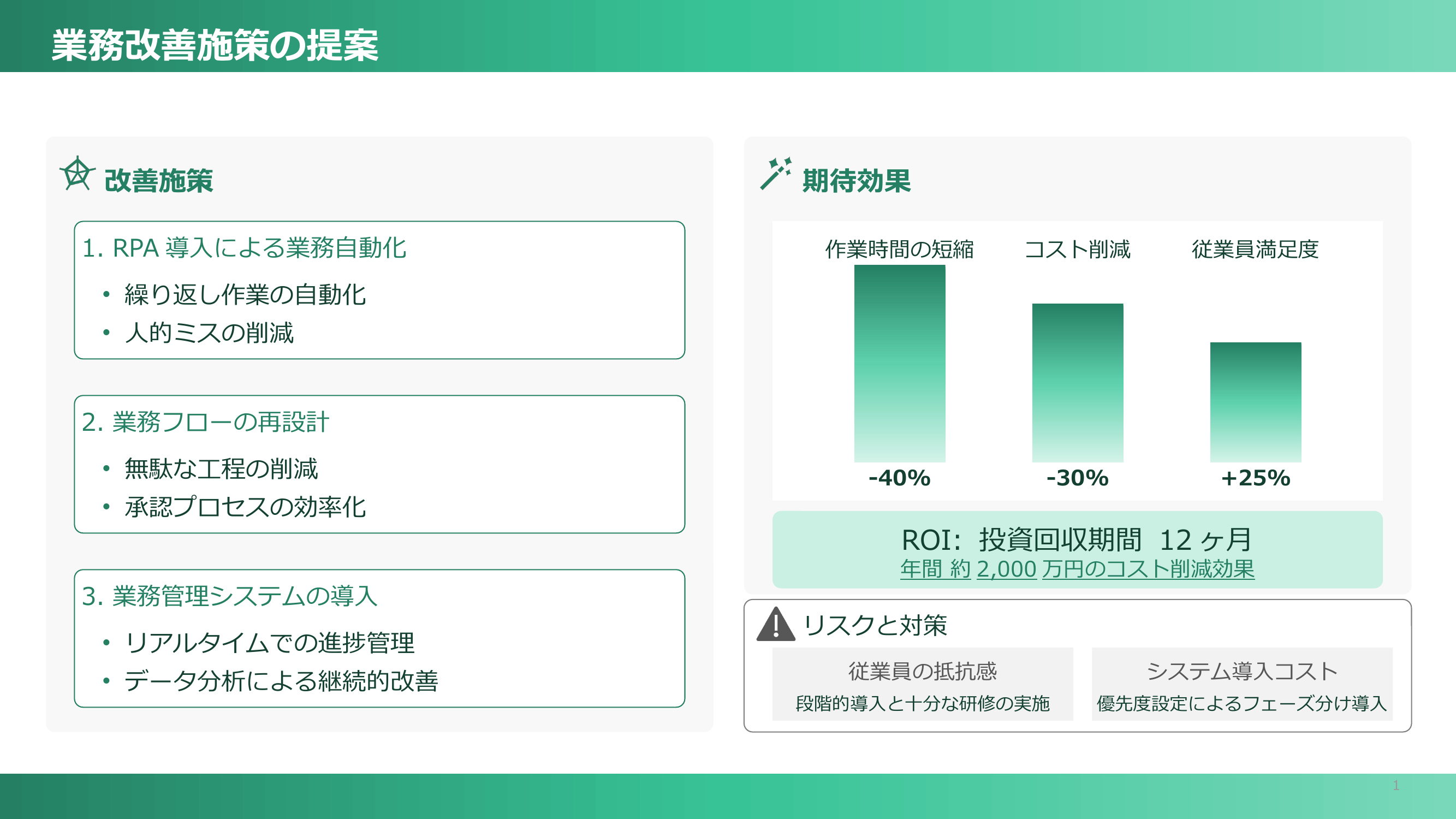 分割版2ページ目_スケジュール付き:業務改善プロジェクト提案パワポテンプレートDocTok。