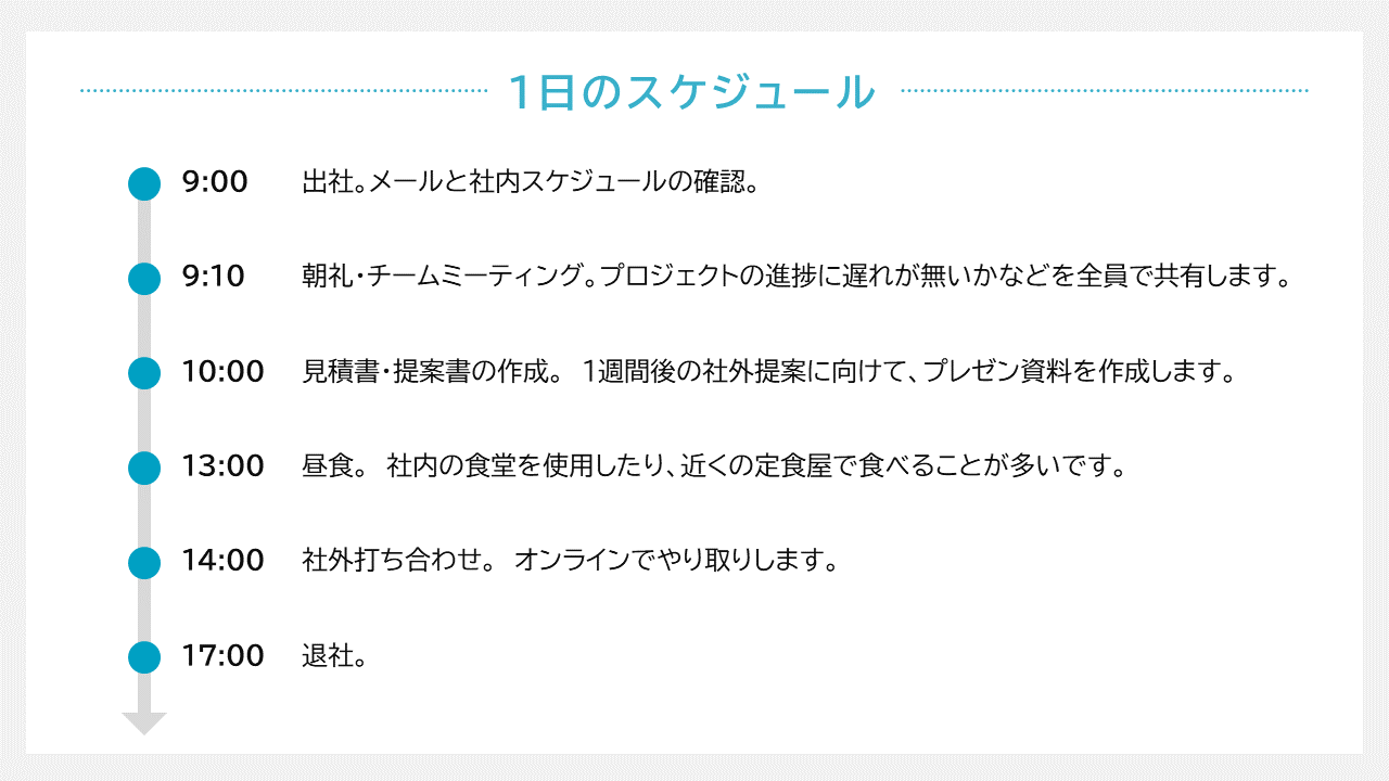 1日の流れ・スケジュールのパワポ・デザイン7選まとめじゅういち 実践プレゼン資料作成術。