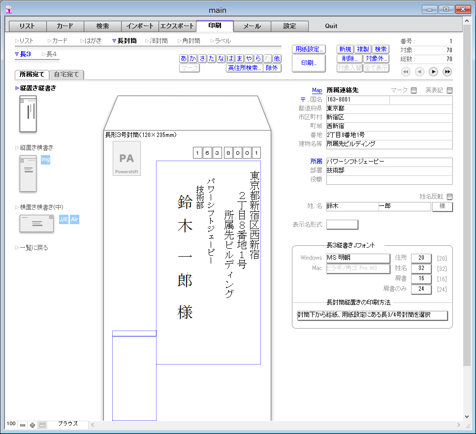 封筒 宛名印刷例Windows- PowerAddress。