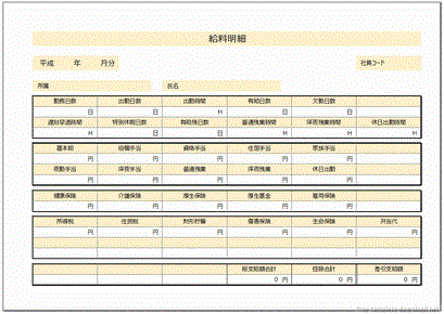 給与明細票02のテンプレート・例文:Excel エクセルテンプレート・フリーBiz。