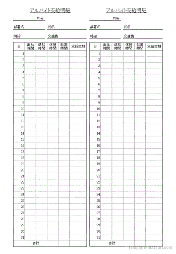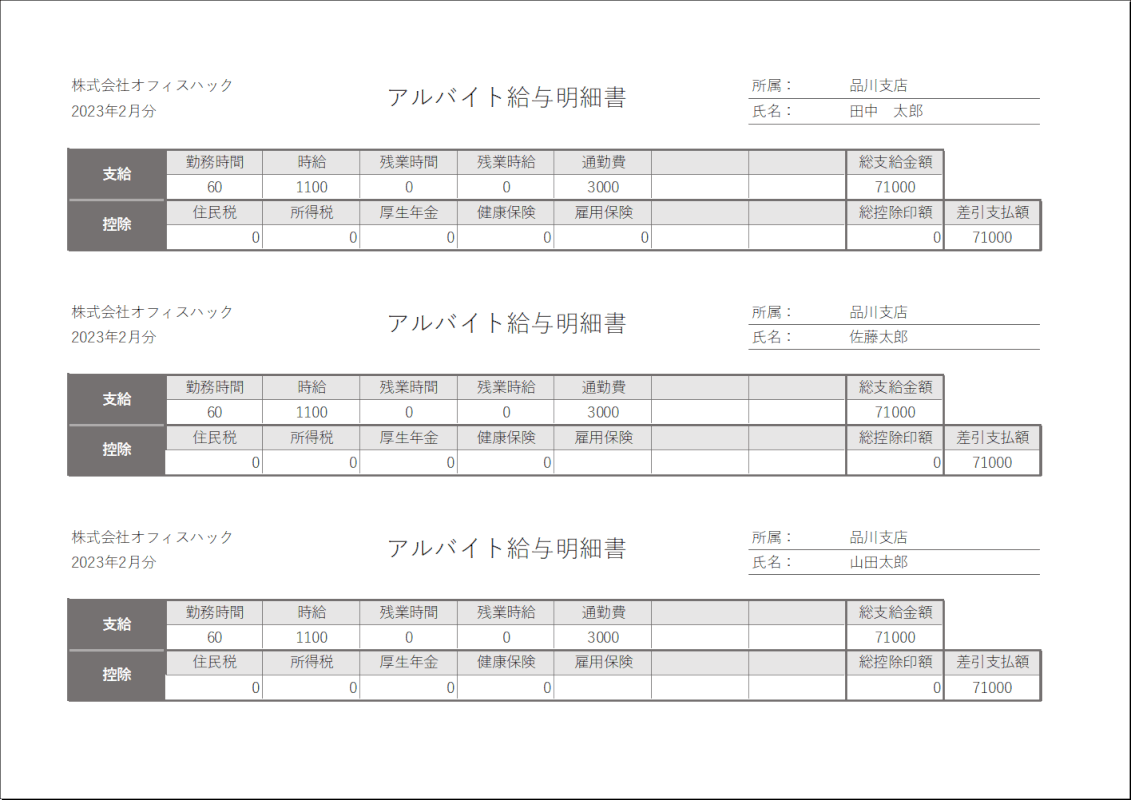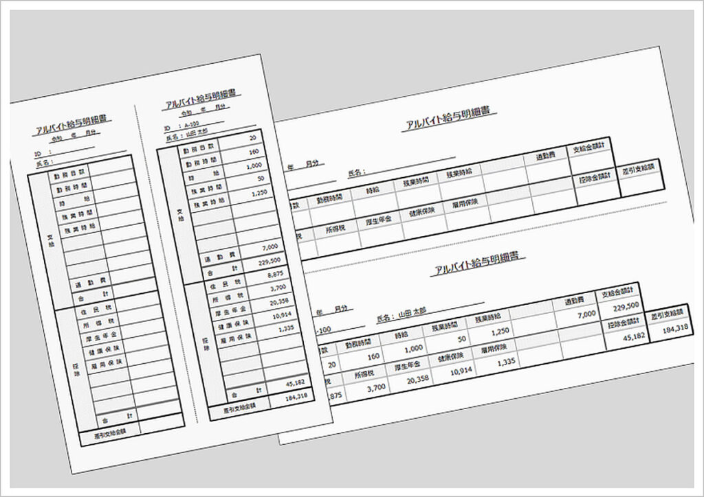 アルバイト給与明細書:自動計算できるExcelテンプレート - 登録不要のフリーテンプレート。