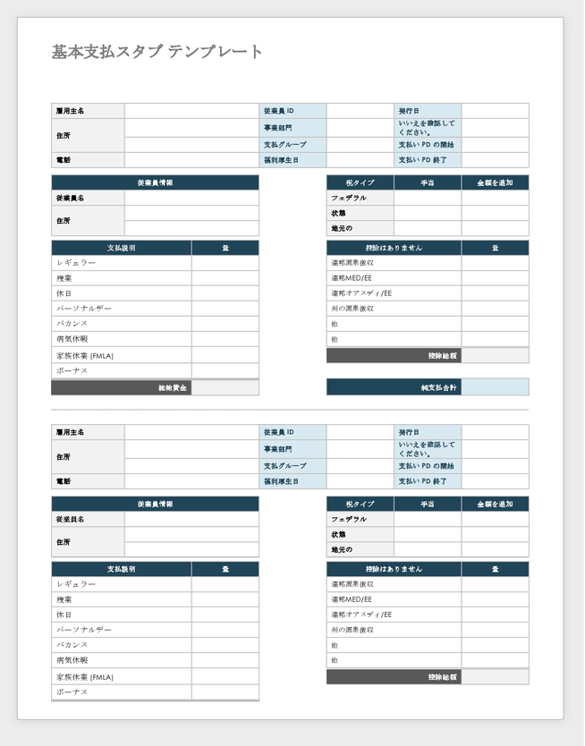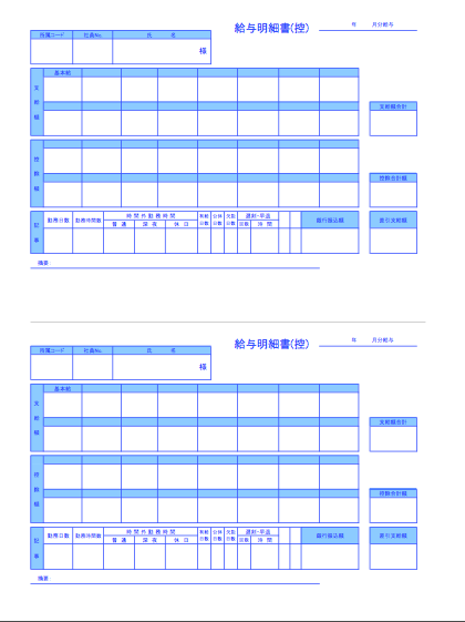 給与明細書2書式のExcelテンプレートを無料ダウンロード。