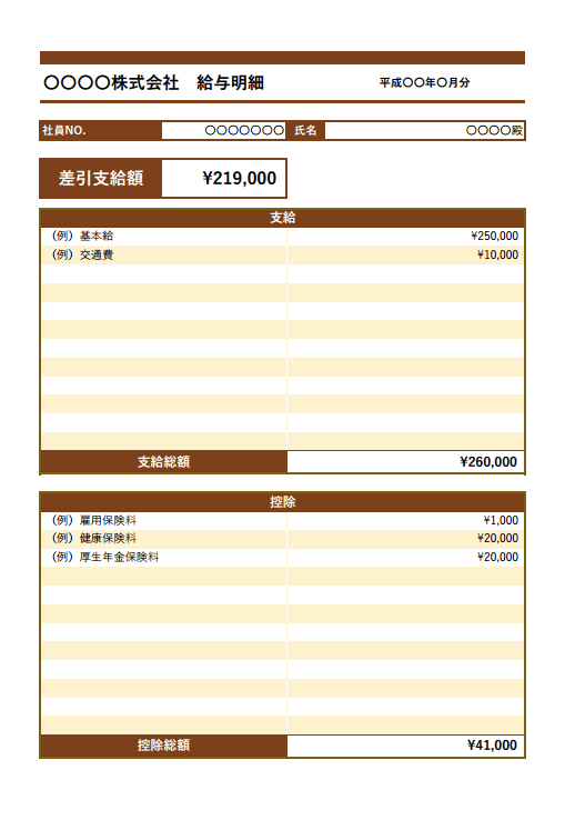 給与明細 テンプレート 無料エクセルで使える給料明細 自動計算・雛形ありBizroute。