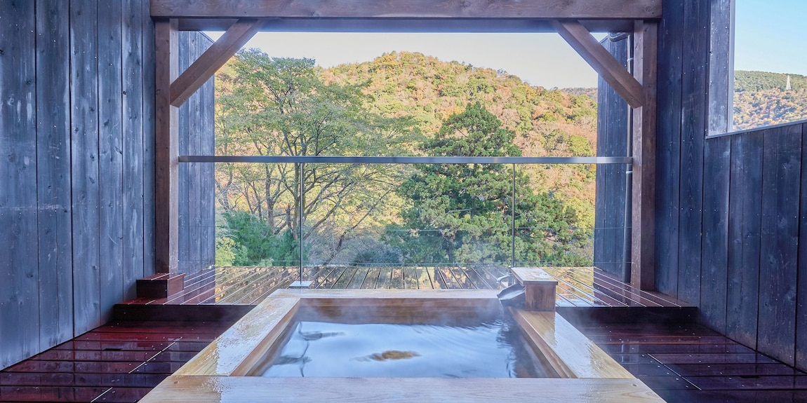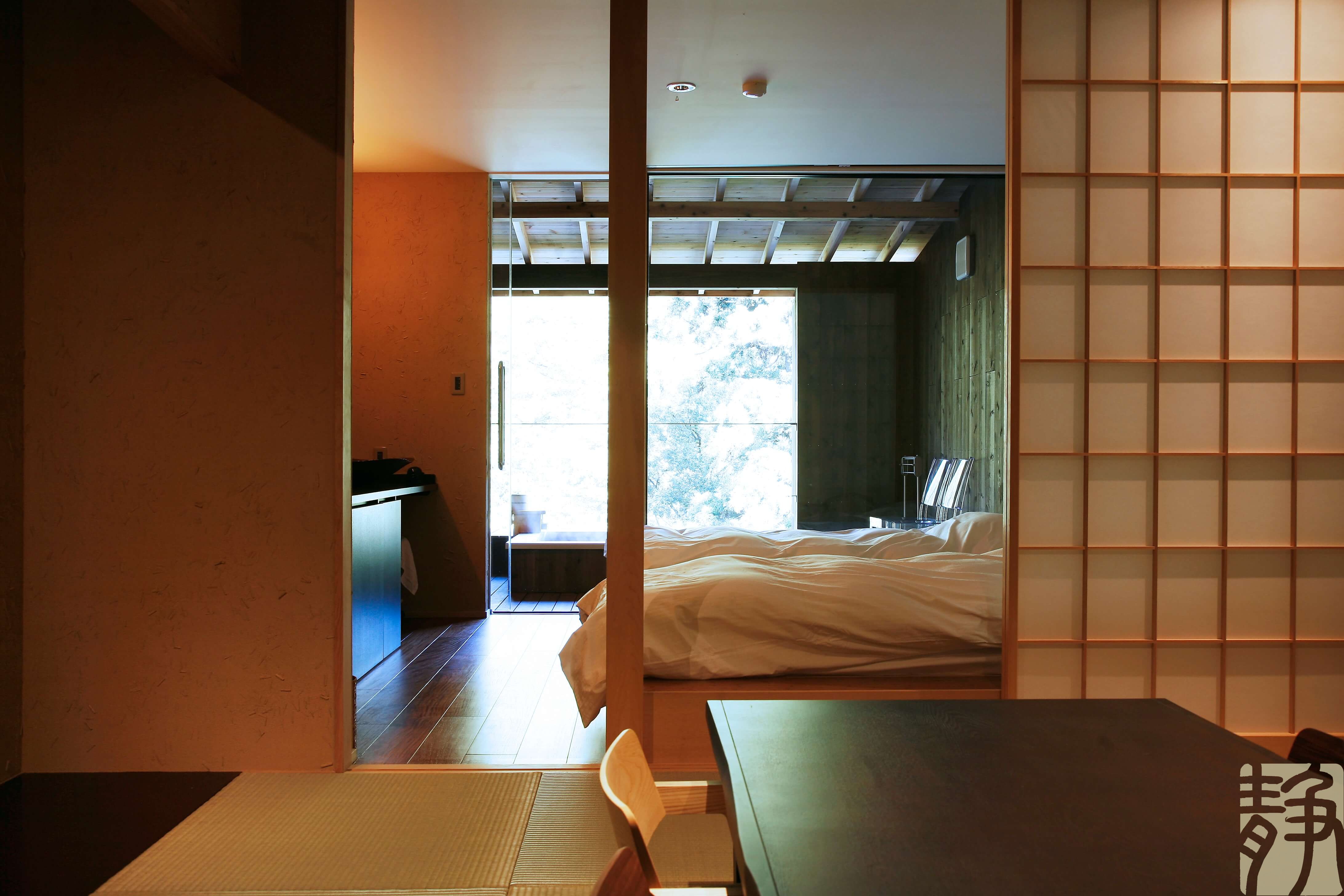 静観荘箱根 温泉旅館 静観荘です。 本日は全9室中の1室「海松 みる 」をご紹介いたします。 テラス露天風呂付き客室😳✨✨ お部屋は2階にあり8畳の和室とツインのベットルーム 露天風呂は屋根がある半露天風呂 露天風呂は湯坂山を望む源泉掛け流しの天然温泉となっ。