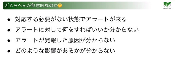 なぜベテラン運用者は「しきい値超えのアラート」を静観できるのか ブロードリーフが考える“アラートへの向き合い方”:「Cloud OperatorDays Tokyo 2022」セミナーレポート#5 - @IT。