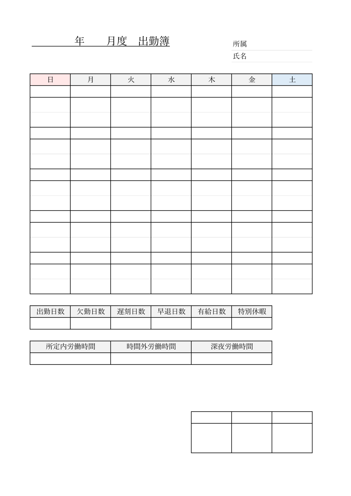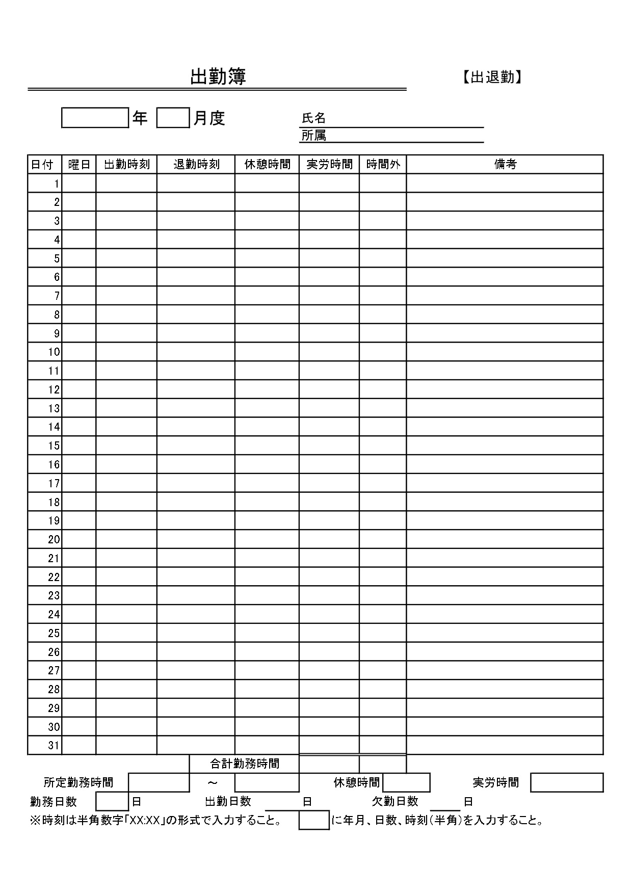 出勤簿 基本的な必須事項 A4サイズでExcel&Wordで編集・PDFで手書きが可能な無料テンプレートをダウンロード王の嗜み。