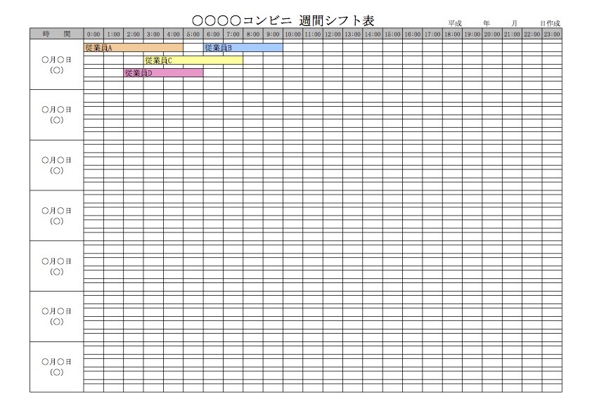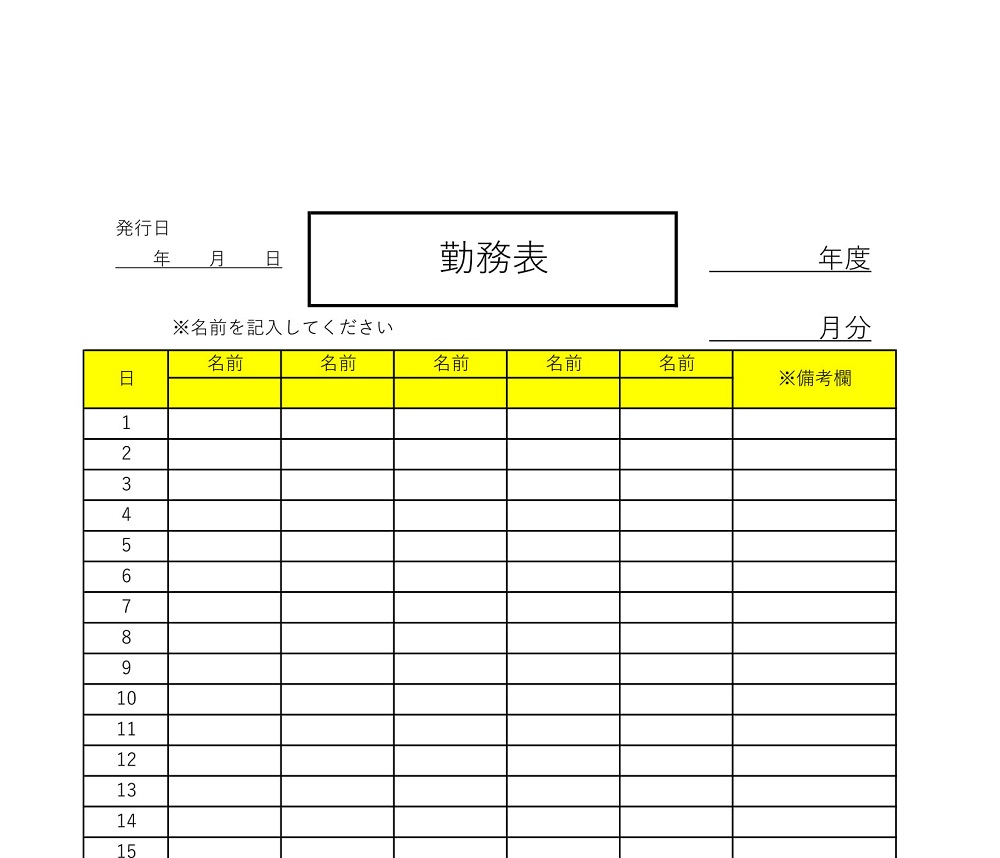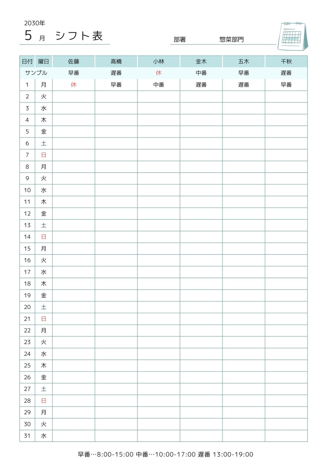 シフト表 1カ月分 のテンプレート「印刷・手書き・A4」ダウンロード:イラスト無料。