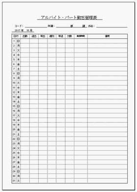 アルバイト・パート勤怠管理表 - 無料でダウンロードできるテンプレート。