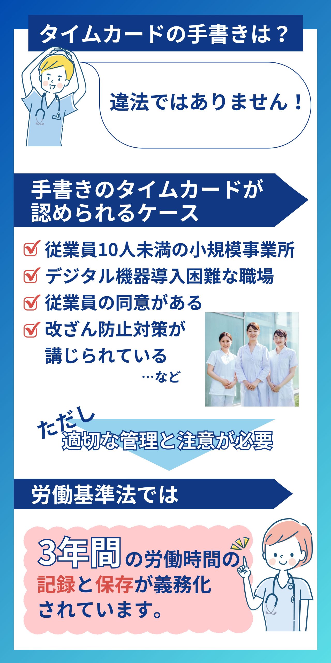 社労士解説 手書きのタイムカードは問題ない?手書きの勤怠管理を行うリスクとはクラウド型勤怠管理システム「楽楽勤怠」。
