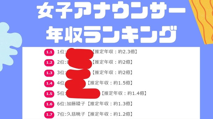 年収 女子アナ・男性アナウンサー収入ランキング43選 2025最新版RANK1 ランク1 人気ランキングサイト~国内最大級。