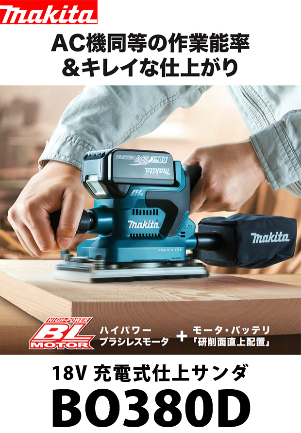 マキタ 18V 充電式仕上サンダ BO380D 電動工具・エアー工具・大工道具 電動工具>仕上げサンダ・ベルトサンダ。