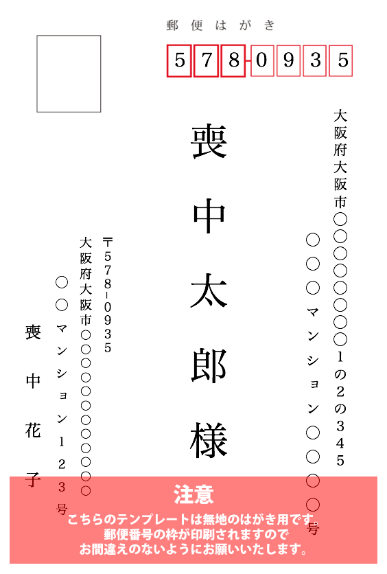喪中はがきの無料デザインと文例Wordテンプレートのダウンロード - 登録不要のフリーテンプレート。