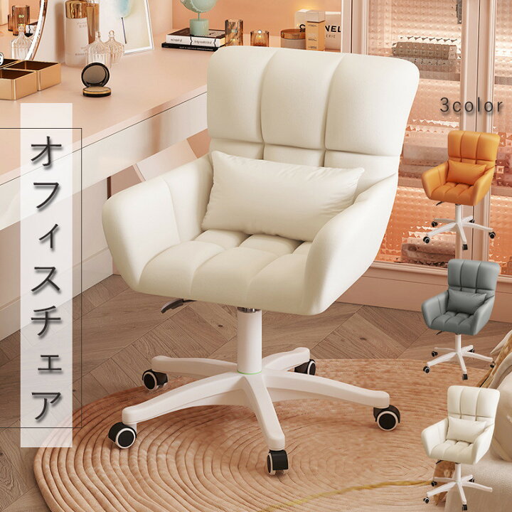 dショッピング デスクチェア おしゃれ チェア キャスター ミルクティホワイト オフィスチェア 椅子 パソコンチェア ベロア調 くすみカラー 韓国風在宅ワーク 白 ホワイト ピンク 韓国 インテリア 学習 椅子 北欧 疲れない 疲れにくい 子供 学習イス PCチェア アシェル。