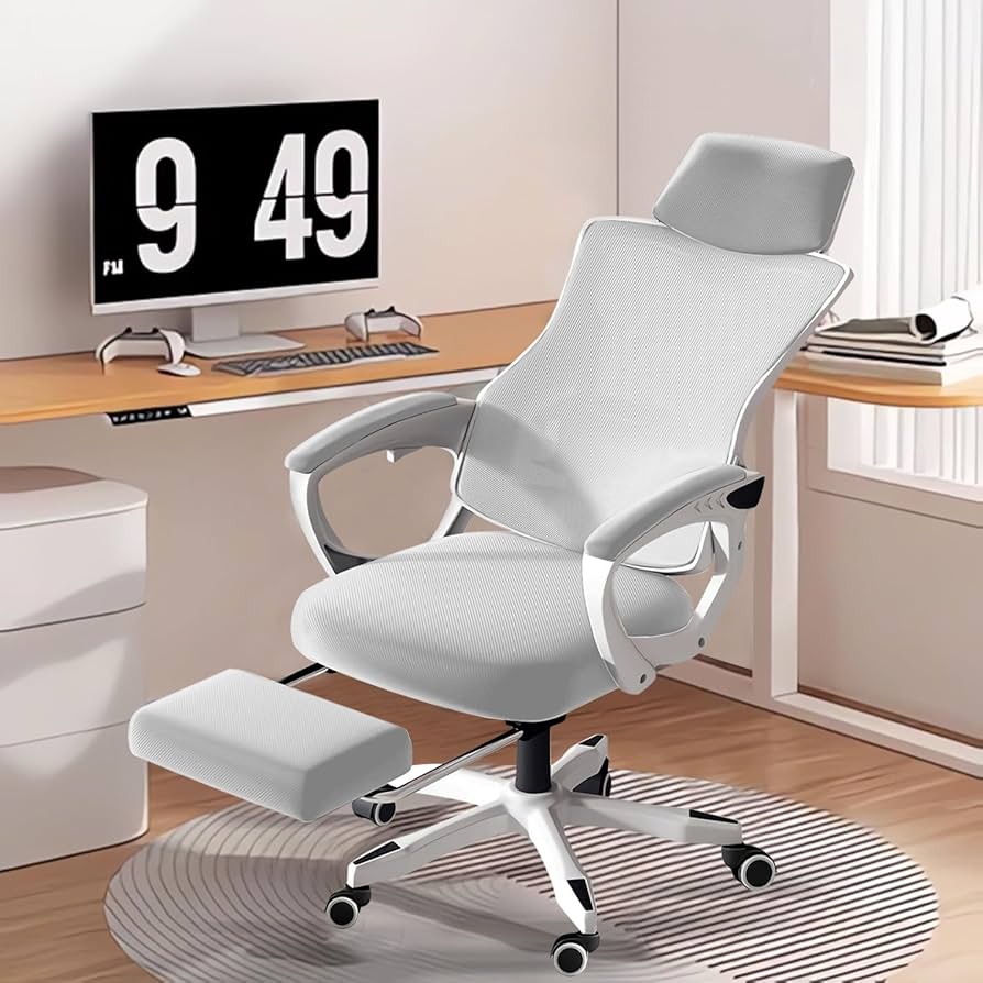 Amazon.co.jp:EdoErgoオフィスチェア 椅子 テレワーク 疲れない 腰が痛くならない 「360度回転 通気性に優れロッキング機能 収納式フットレスト 約135度リクライニング」 パソコンチェア 人体工学椅 ワークチェア 事務椅子 在宅勤務 人気 おしゃれH-WY03灰網+白枠。