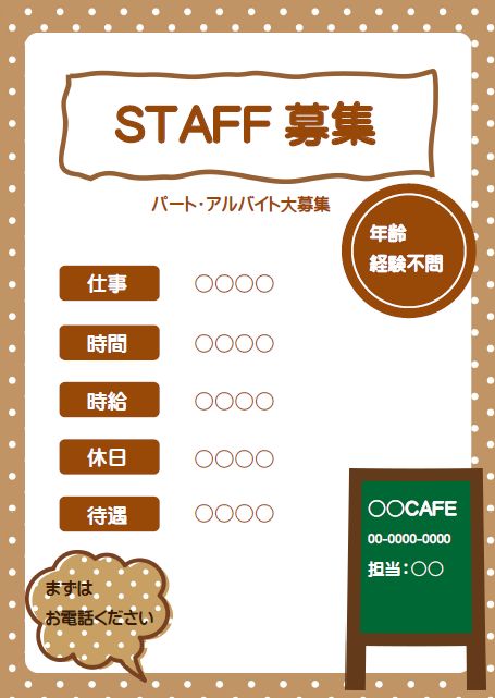 文書 テンプレートの無料ダウンロード: 求人募集・求人広告の張り紙 貼り紙 ・チラシ・ポスタ。