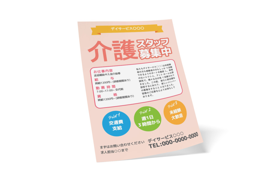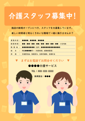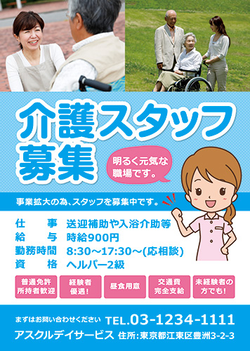 無料チラシテンプレート - 介護事業・サービス求人向けのチラシデザインASOBOAD。