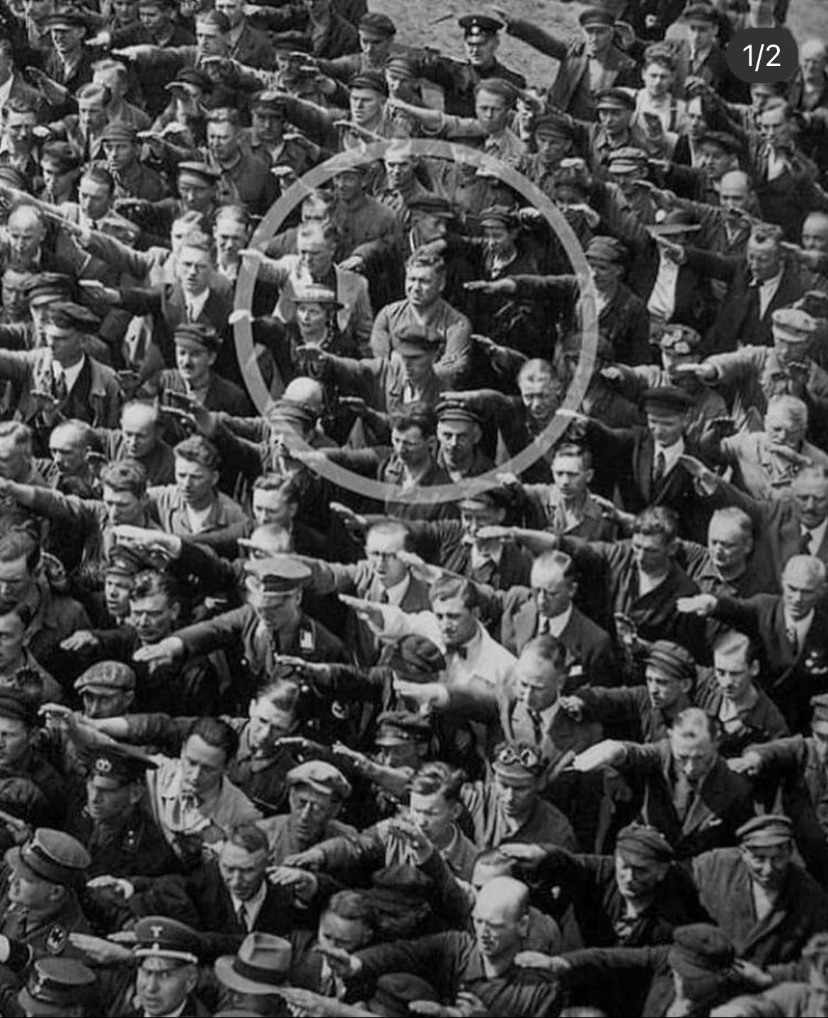 高井宏章 on X: "ひとりだけナチス式の敬礼を拒否している男性の名はアウグスト・ランドメッサー。写真は1936年のドイツ海軍の進水式のもの。その前年に結婚した相手のイルマ・エクラーはユダヤ人だった。「ドイツ民族の純潔を守る」ニュルンベルク法に抗うかのように。