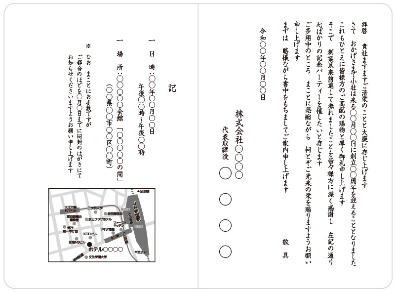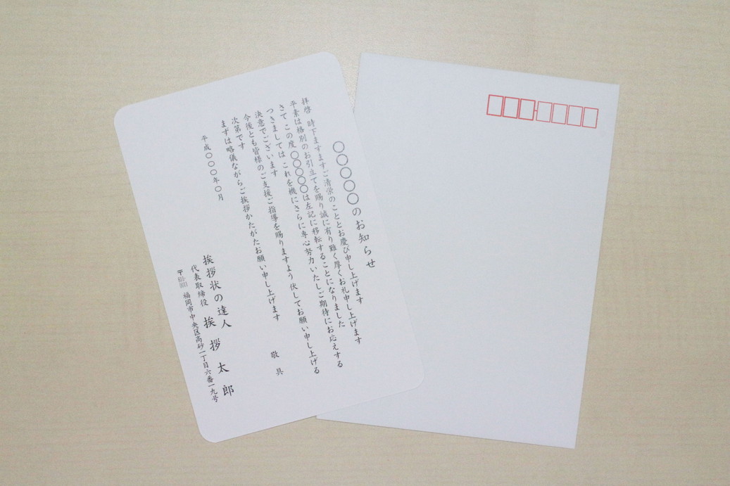 会社設立・独立開業 挨拶状大部数印刷短納期封入封緘投函宛名印刷自由文。
