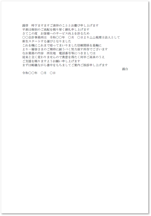 例文 会社設立時の挨拶状マナーや書き方を解説松原税理士・社会保険労務士事務所。