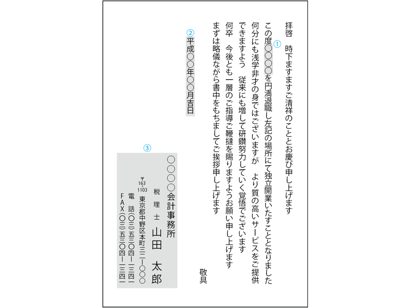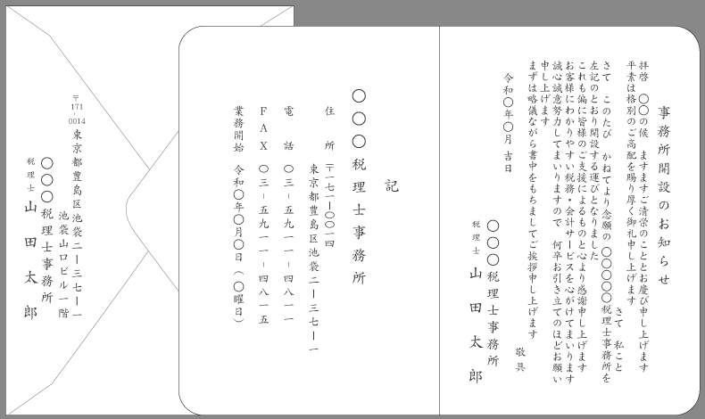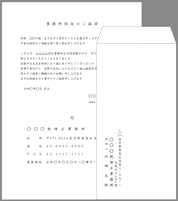 独立開業_税理士_文例挨拶状印刷専門店「挨拶状の達人」会長、社長就任から個人の挨拶まで。