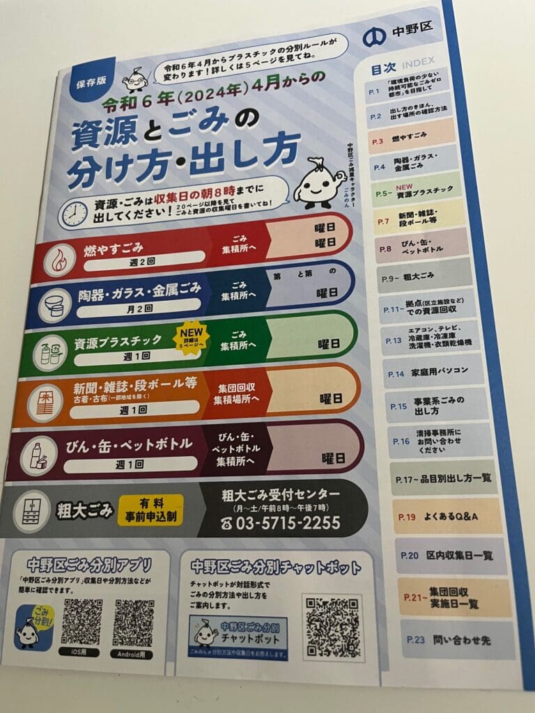 中央区ホームページ 「ごみと資源の分け方・出し方」パンフレット。