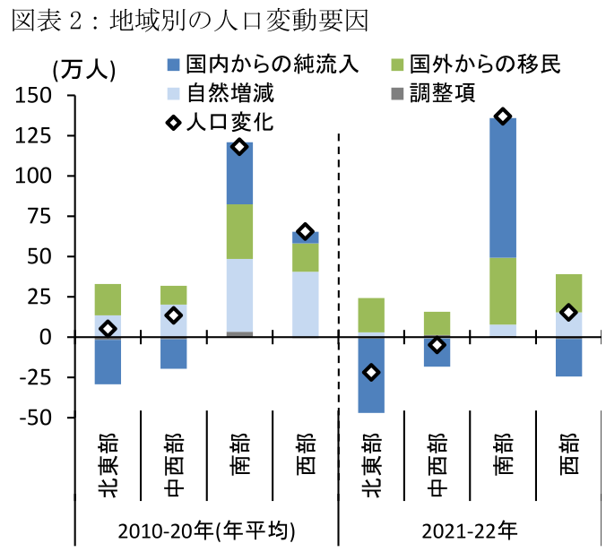 アメリカ人は南へ向かう ~堅調な労働市場や住宅価格の安さを背景に南部へと人口が流入~前田 和馬第一生命経済研究所。