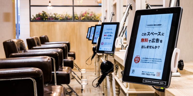 美容室 サイネージ広告「be&clip」サービス紹介株式会社アスコンはあらゆる販促をサポート。