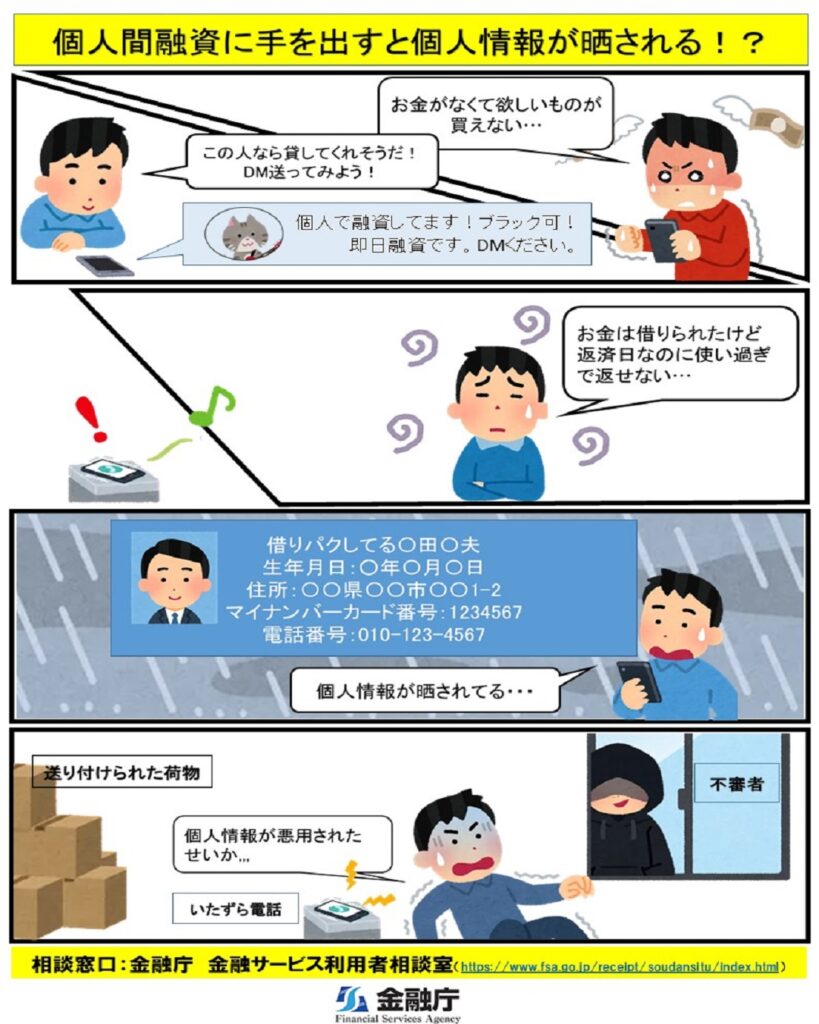 SNS等を利用した「個人間融資」にご注意ください!:金融庁。