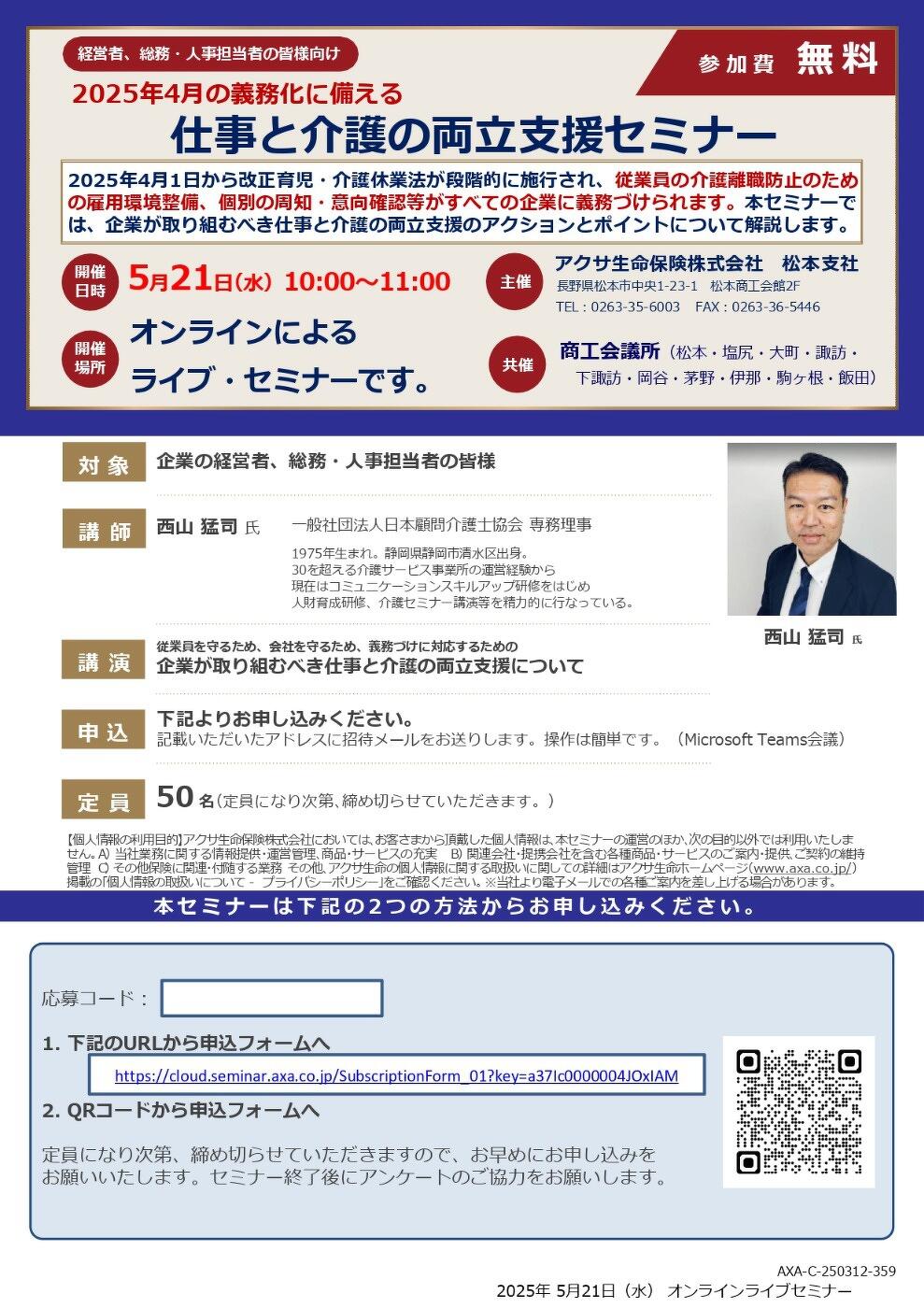 5 21 仕事と介護の両立支援セミナーセミナー下諏訪商工会議所。