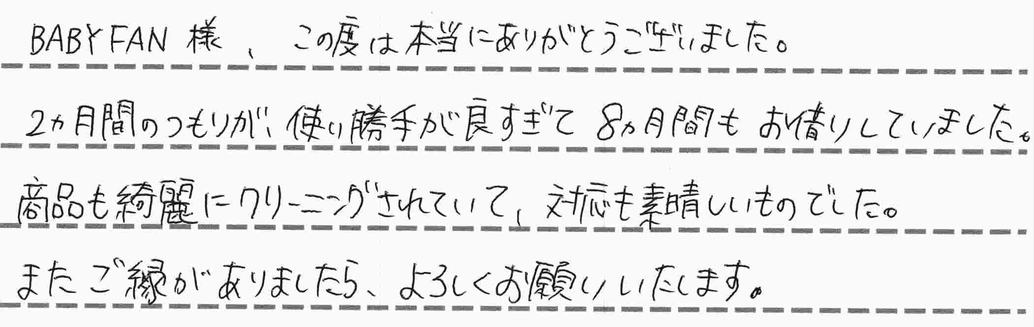そうですよね。 安くお譲りいただいたし、息子も 喜んでいたので、その旨を書いた 上で、またご縁がありましたら、 よろしくお願いいたします。と、丁寧に挨拶をしたつもりですが^^; トラブルはいっさいなかったです。 少し驚きました😮。