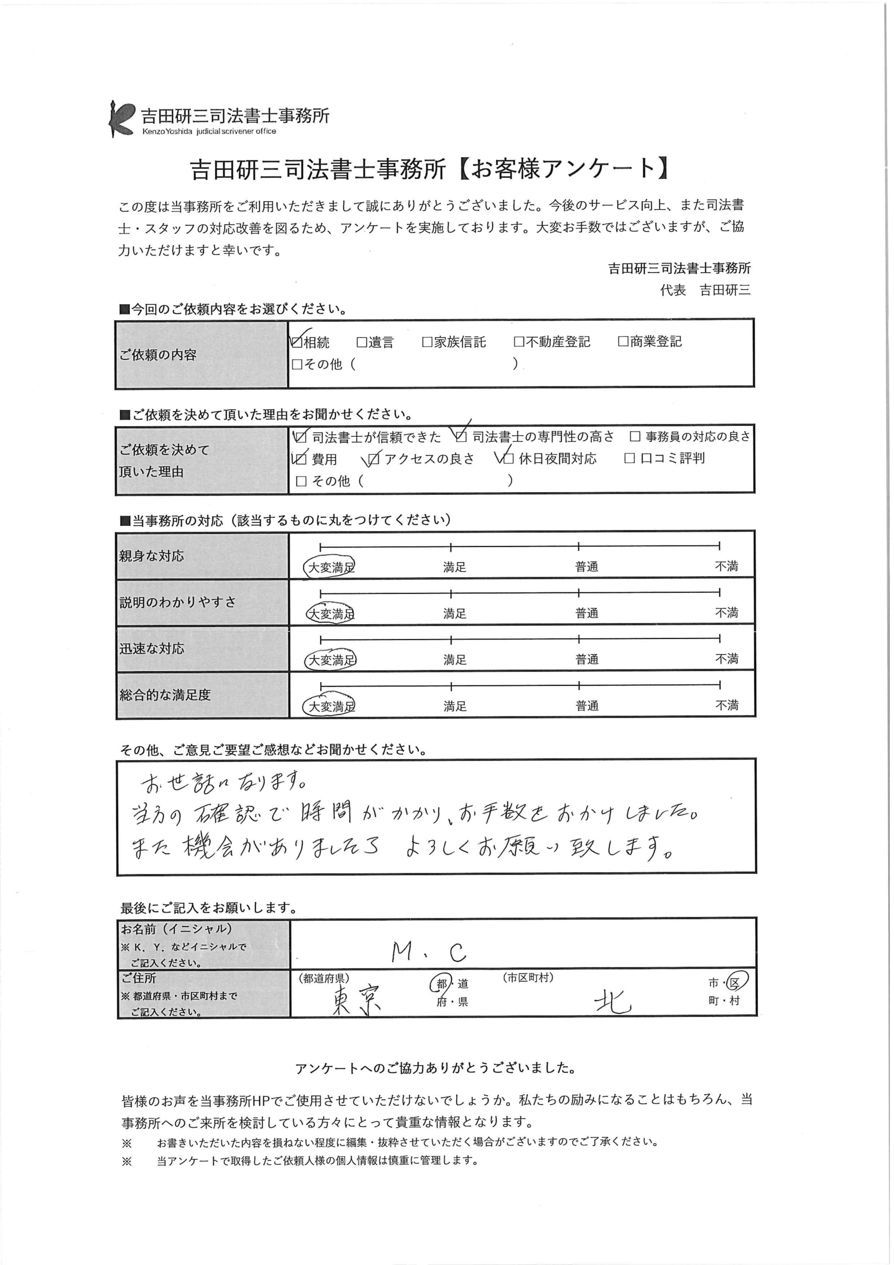 また機会がありましたらよろしくお願い致します 相続 北区 M・C 様公式 駒込相続・遺言相談室公式 駒込相続・遺言相談室。
