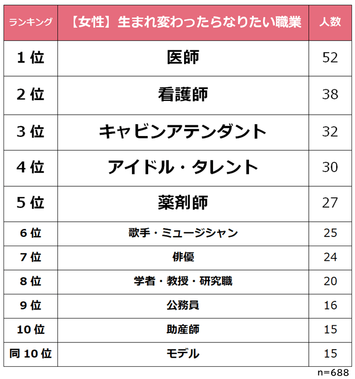 生まれ変わったらなりたい職業ランキング男女1,000人へのアンケート調査結果を紹介。