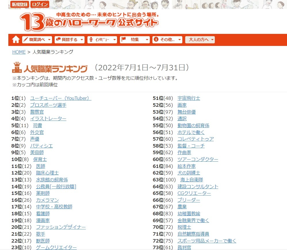 2025年7月の人気職業ランキング発表!若者の夢が見えるデータとは - まとめまとめ ニュース。
