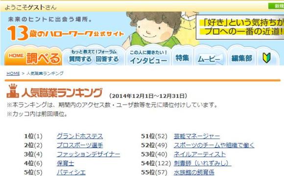 将来つきたい職業ランキングピックアップ未来の仕事キッズネット。