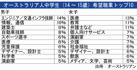 ポッサムのつぶやき 豪中学生の希望職業ランク、エンジニアと医療 - NNA ASIA・オーストラリア・社会。