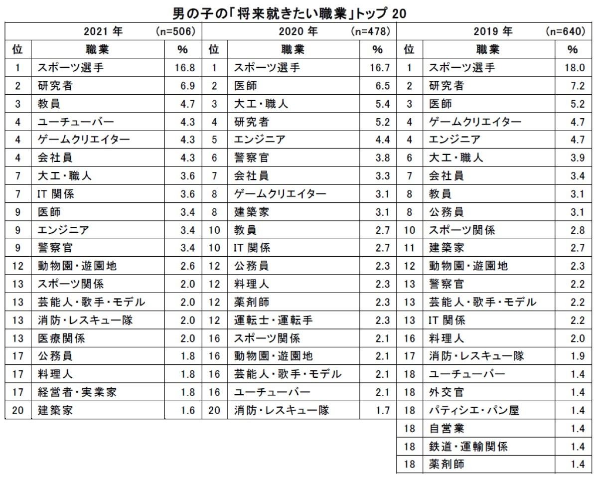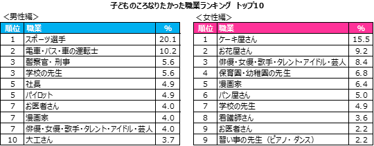 20~30代のビジネスパーソン1,000人に聞いた> 「子どものころなりたかった職業」ランキング発表!パーソルキャリア株式会社のプレスリリース。