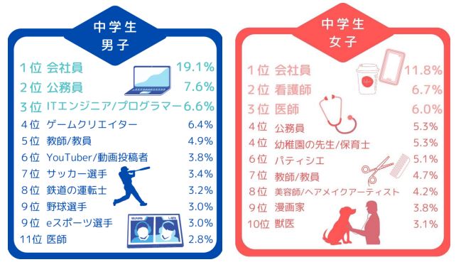 高校生のなりたい職業、人気上位は○○が必要なものばかりに LINEリサーチ調べWeb担当者Forum。