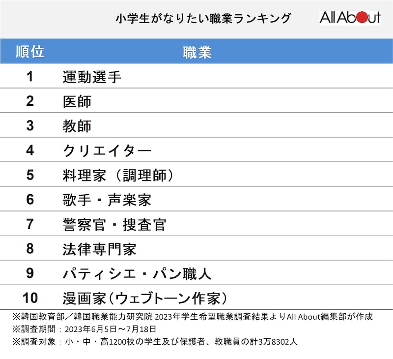 韓国の小中高校生に人気の職業1位は?-Chosun Online 朝鮮日報。