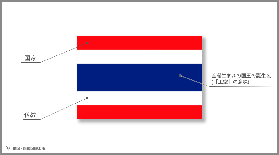 タイ国旗の由来・意味や特徴をイラスト解説。