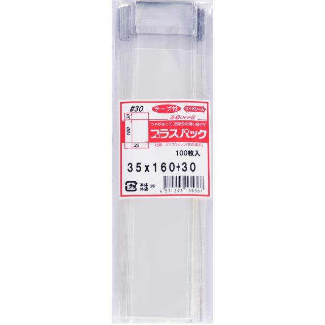 OPP袋 横35x縦160+30mm テープ付き 30。