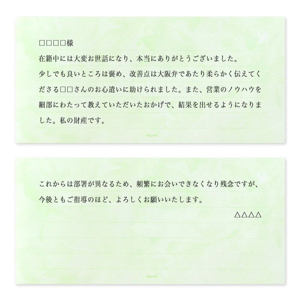 文例 人事異動のときのお礼の一筆箋 職場の先輩手紙の書き方。