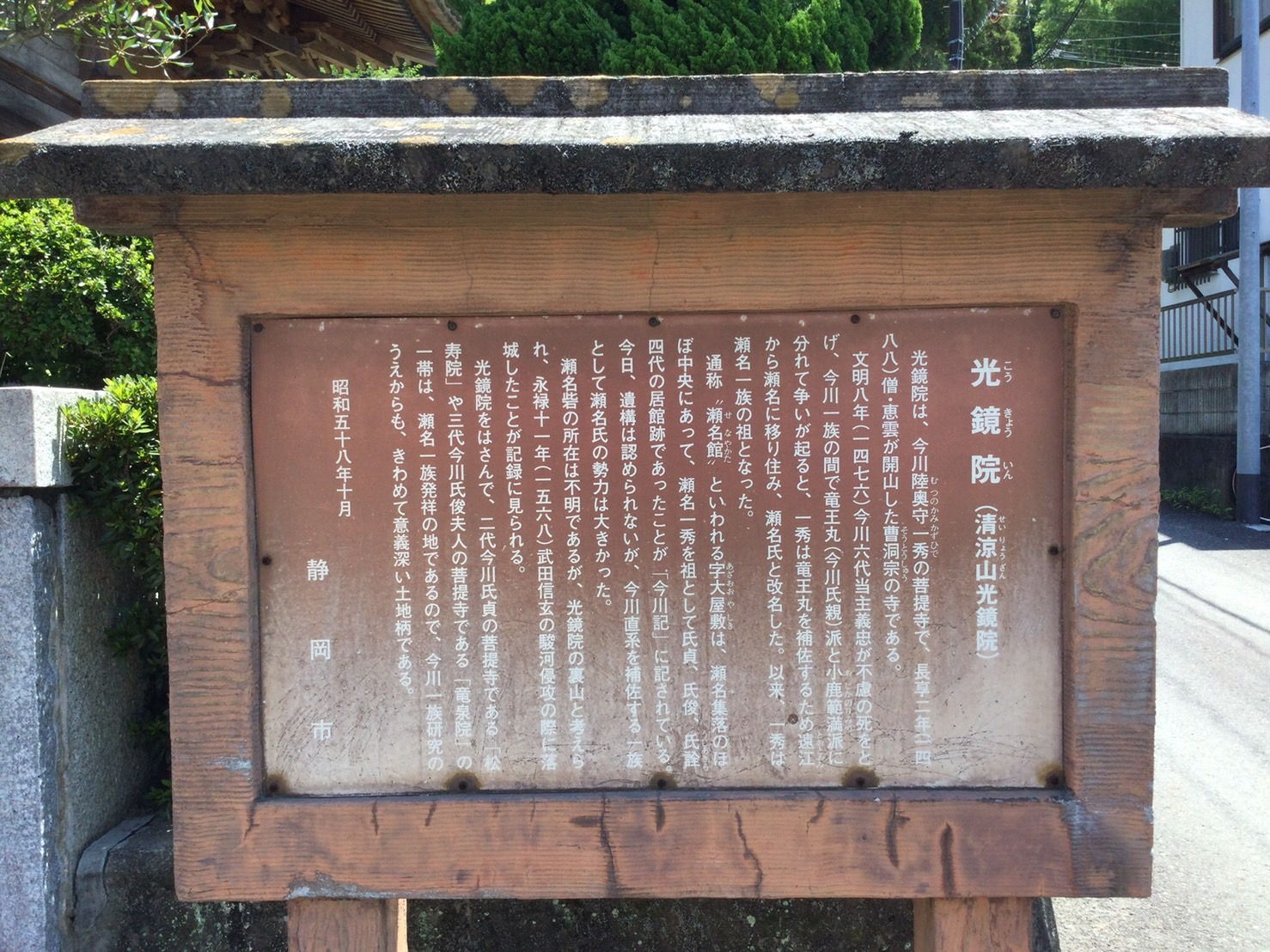 光鏡院~瀬名一族の発祥の地であり今川 瀬名 一秀公の墓があります。お寺の裏山は 瀬名砦 の説があります。歴史探索。