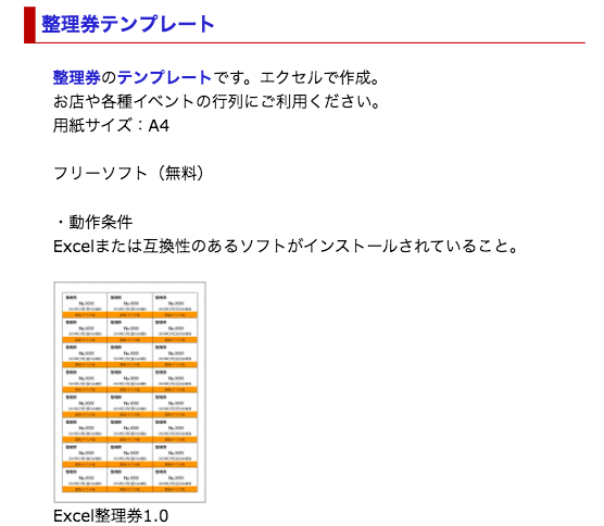 整理券デザインテンプレート&見本8選!作り方・エクセルフォーマット・無料フリーソフト4選OREND オレンド。