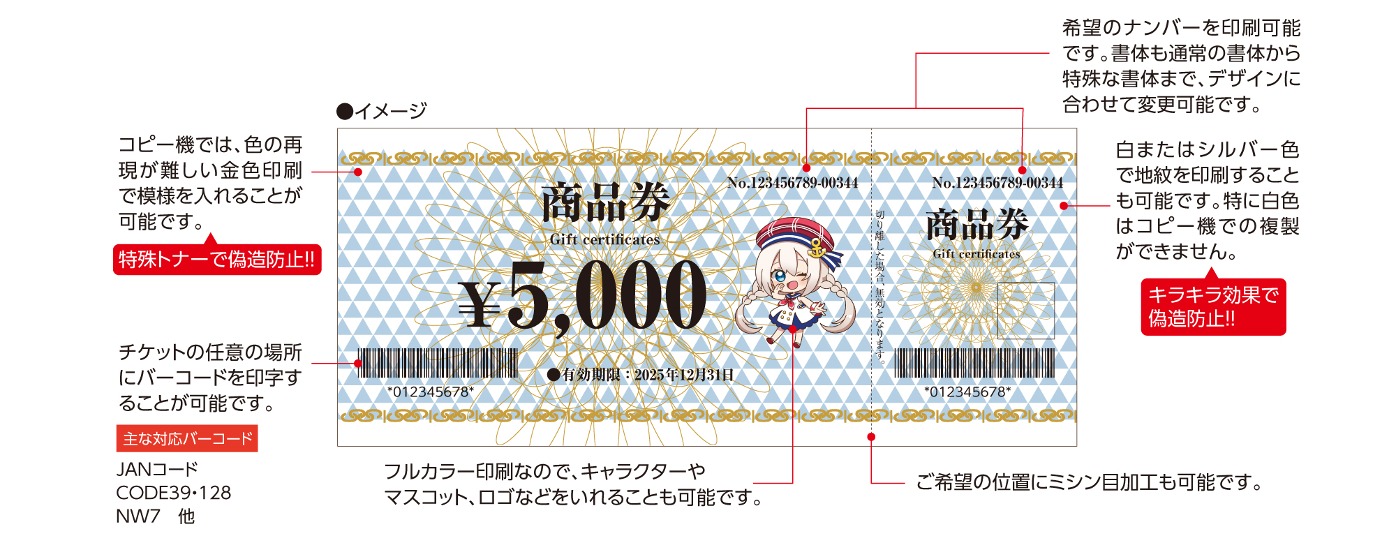 商品券・ギフト券印刷 商品情報と価格表:印刷のロケットプリント。