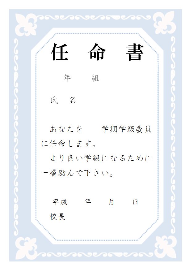 園児向け任命書無料の雛形・書式・テンプレート・書き方ひな形の知りたい。