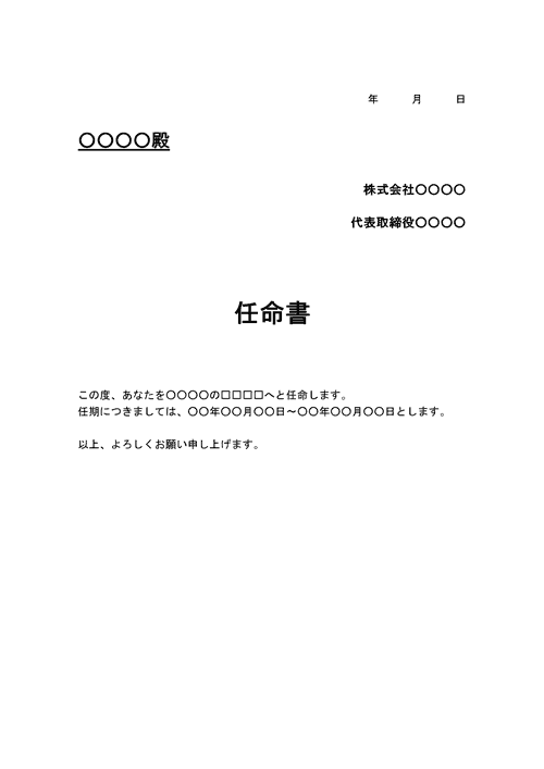 任命書のカテゴリ一覧無料のビジネス書式テンプレート。